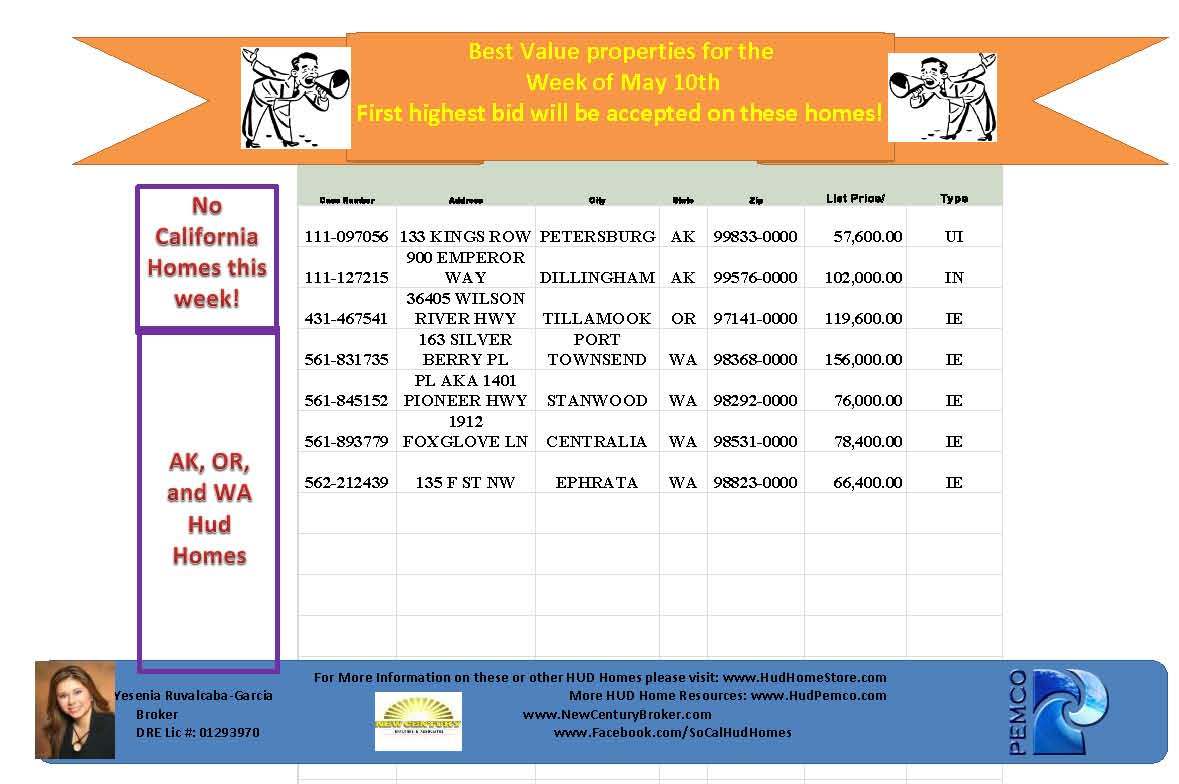 HUD Homes Best Value List for the week of May 10th and How To Get Your NAID Number!