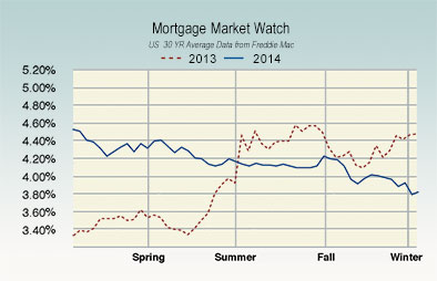 At the beginning of December, mortgage rates dropped to the lowest levels of the year. The 30-year fixed-rate mortgage fell to 3.89 percent, the lowest rate posted since May 2013. At the same time last year, mortgage rates were 4.46 percent. Economists have long maintained that mortgage rates will increase, and they predict that rates will climb to five percent by the end of 2015.