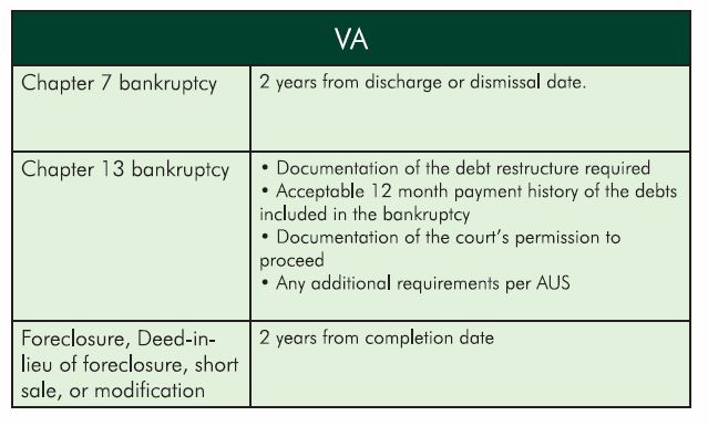 As you can see, there is a difference between the requirements or guidelines of FHA vs Conventional vs VA financing. There are also exceptions that are sometimes made based on extenuating circumstance. To be eligible for the reduced seasoning time due to extenuating circumstances borrowers must have re-established credit for 2 years and provide letters of explanation and documentation evidencing the incident was not due to financial mismanagement (aka you just didn’t feel like paying on a house that wasn’t worth what you owed on it). Here are some examples of acceptable situations: