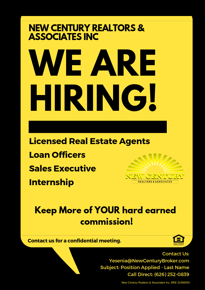 You can Email me: Yesenia@NewCenturyBroker.com or call me directly at 626-252-0839 to schedule a quick meeting.