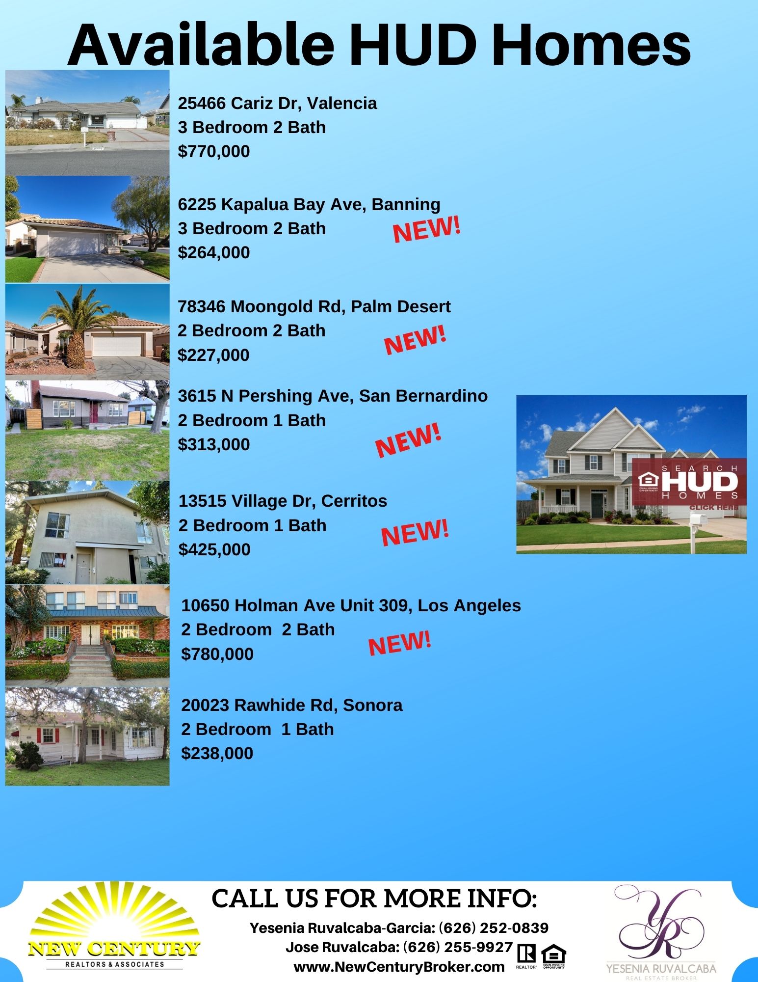 March 7, 2021 Yesenia Ruvalcaba-Garcia Available SoCal HUD Homes for the Weekened of 03/05/2021 Contact me to schedule a private showing of these or other available HUD homes. 626-252-0839 Discover more from New Century Broker's Blog Subscribe to get the latest posts sent to your email. Type your email… Subscribe Share this: Click to share on X (Opens in new window) X Click to share on Facebook (Opens in new window) Facebook Click to email a link to a friend (Opens in new window) Email Click to share on LinkedIn (Opens in new window) LinkedIn Click to share on Pinterest (Opens in new window) Pinterest Click to share on Reddit (Opens in new window) Reddit Click to share on Tumblr (Opens in new window) Tumblr Click to print (Opens in new window) Print Like Loading... Related