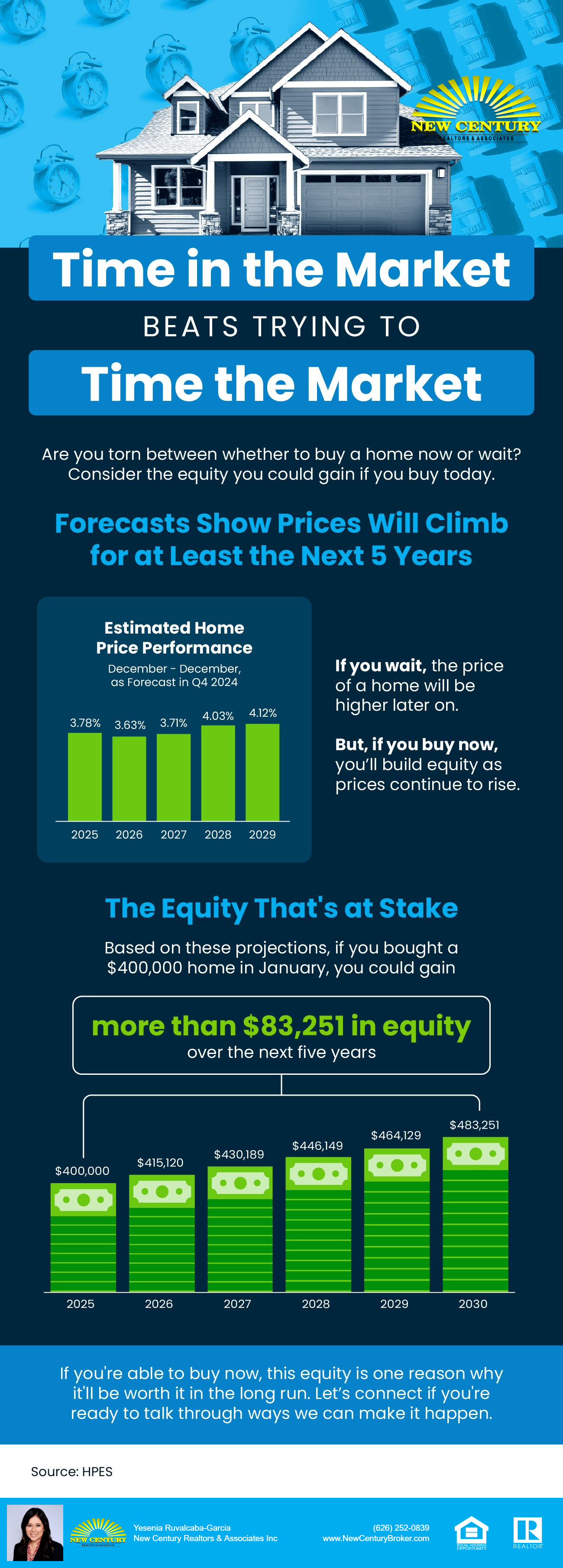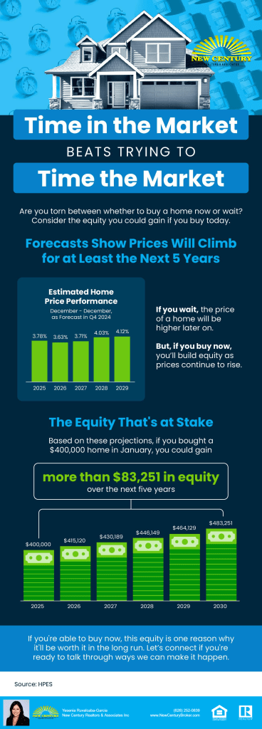 Are you torn between whether to buy a home now or wait? Consider this. Forecasts show prices will climb for at least the next 5 years. If you wait, the price of a home will be higher later on. But, if you buy a $400K now, you could gain roughly $83K in equity as prices rise. If you’re able to buy now, this equity is one reason why it’ll be worth it in the long run. Let’s connect if you’re ready to talk through ways we can make it happen.